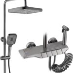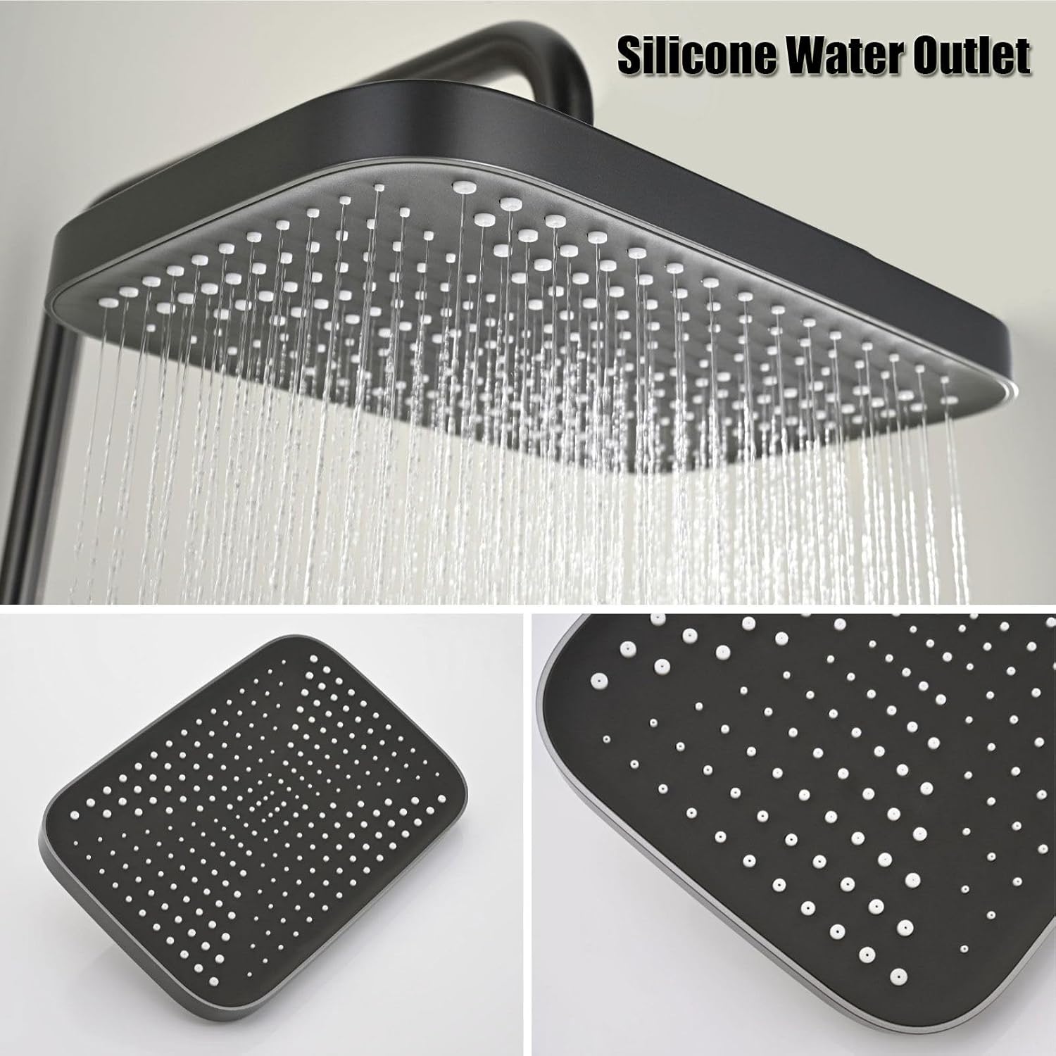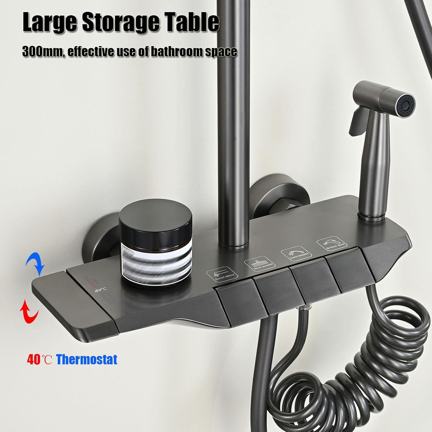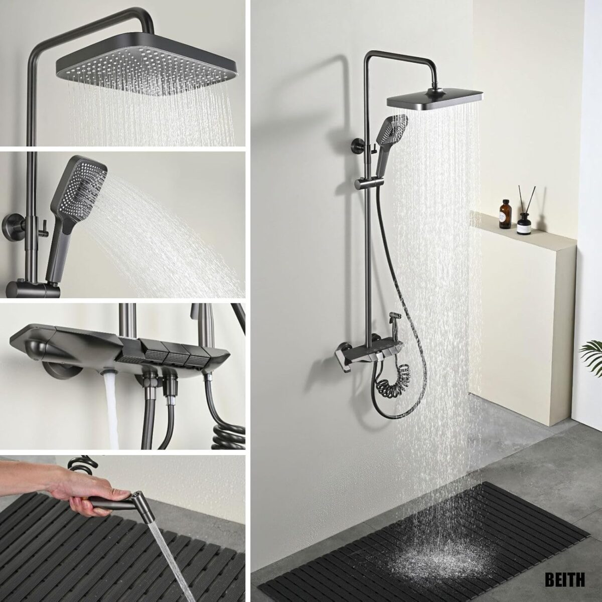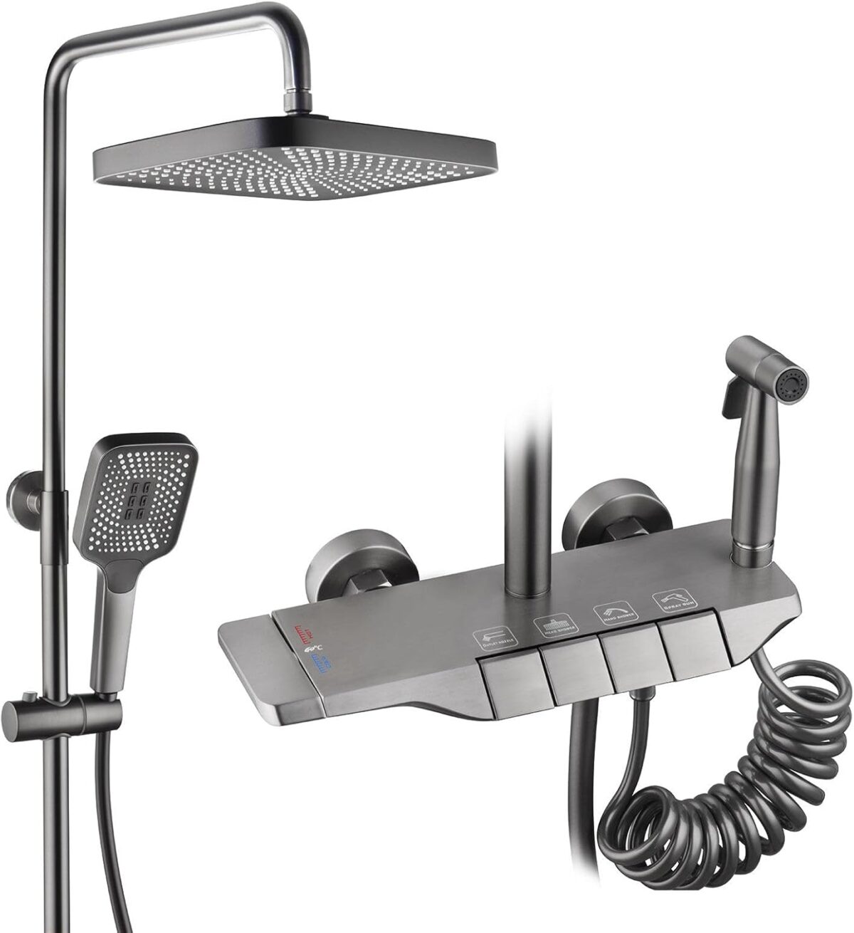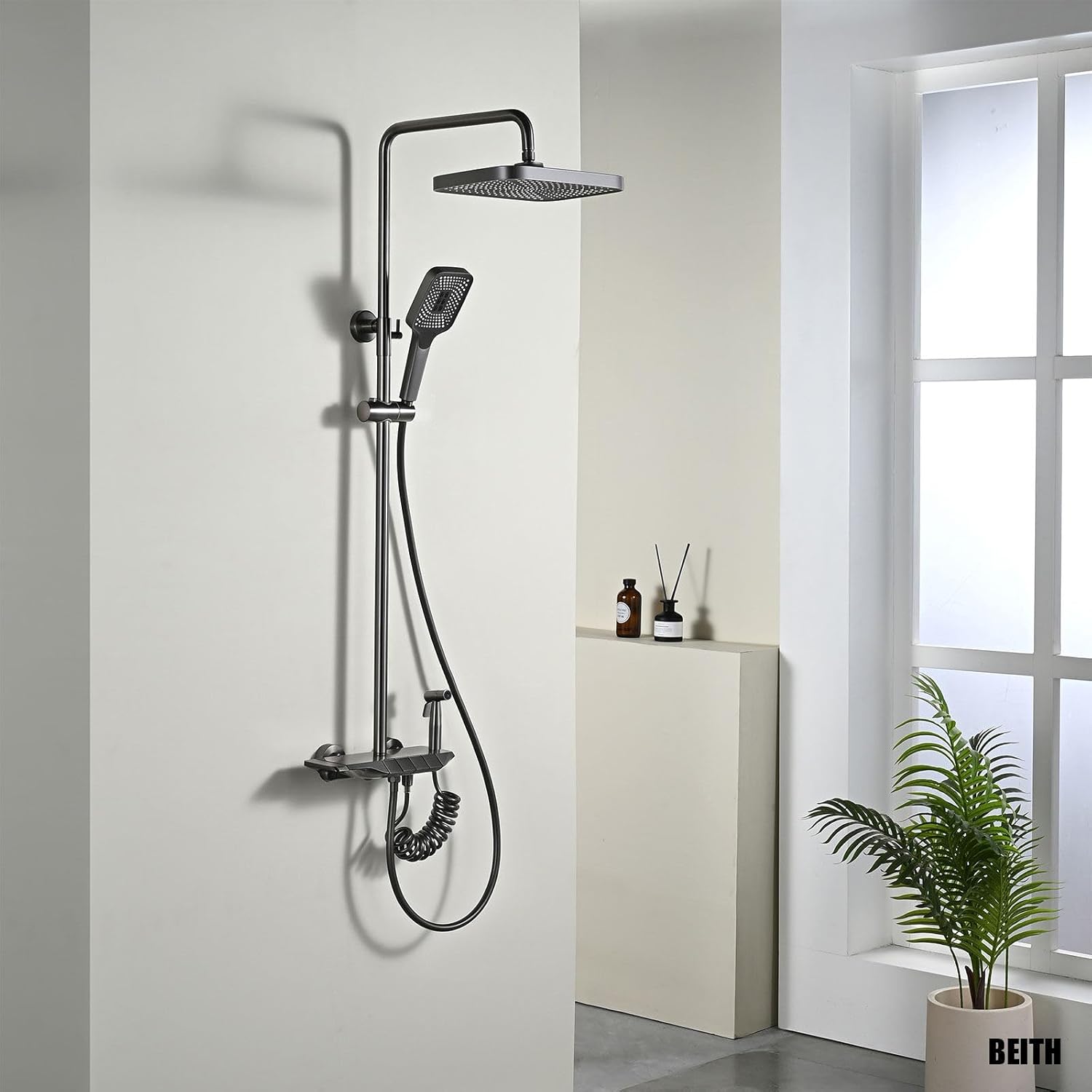 BEITH Thermostatic Shower System, 4 Keys Piano Shower Column, 30 x 21 cm Square Shower Head, with Concealed Bath Tap, Spray Gun, Easy to Clean