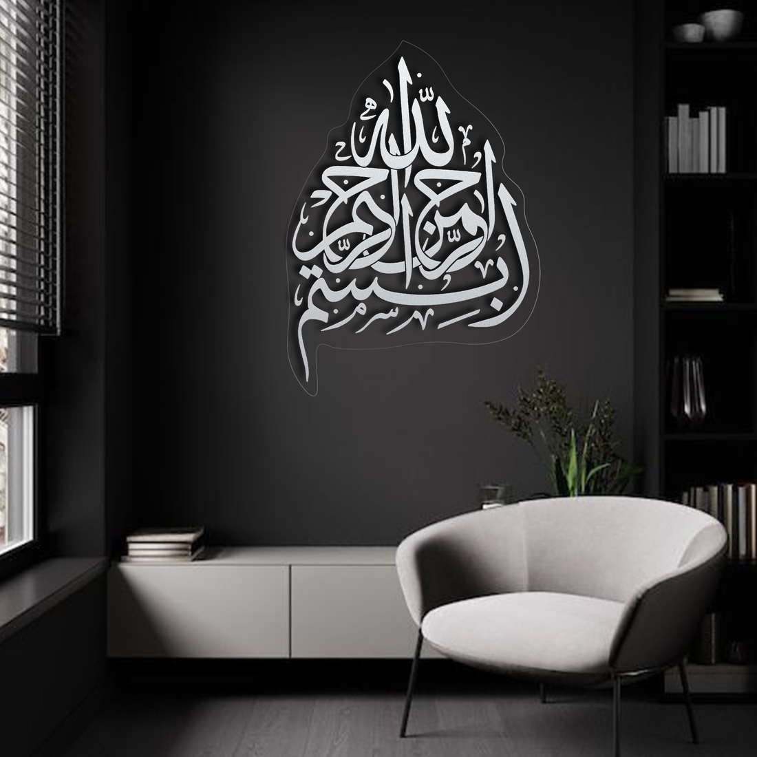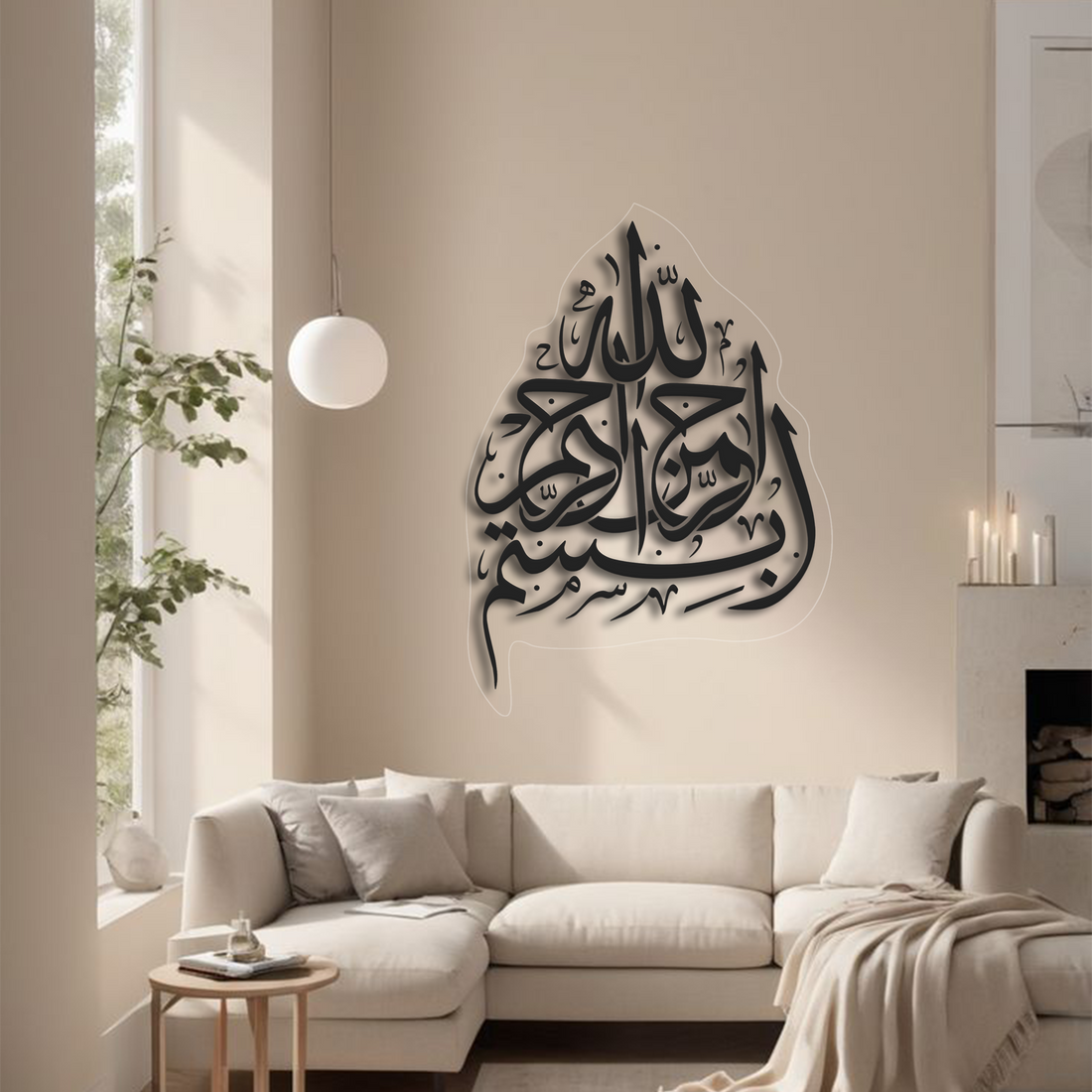 Elegant 6mm thick metal wall art featuring Bismillah Al-Rahman Al-Raheem, bringing a sense of peace, grace, and spiritual beauty to any living space.
