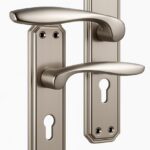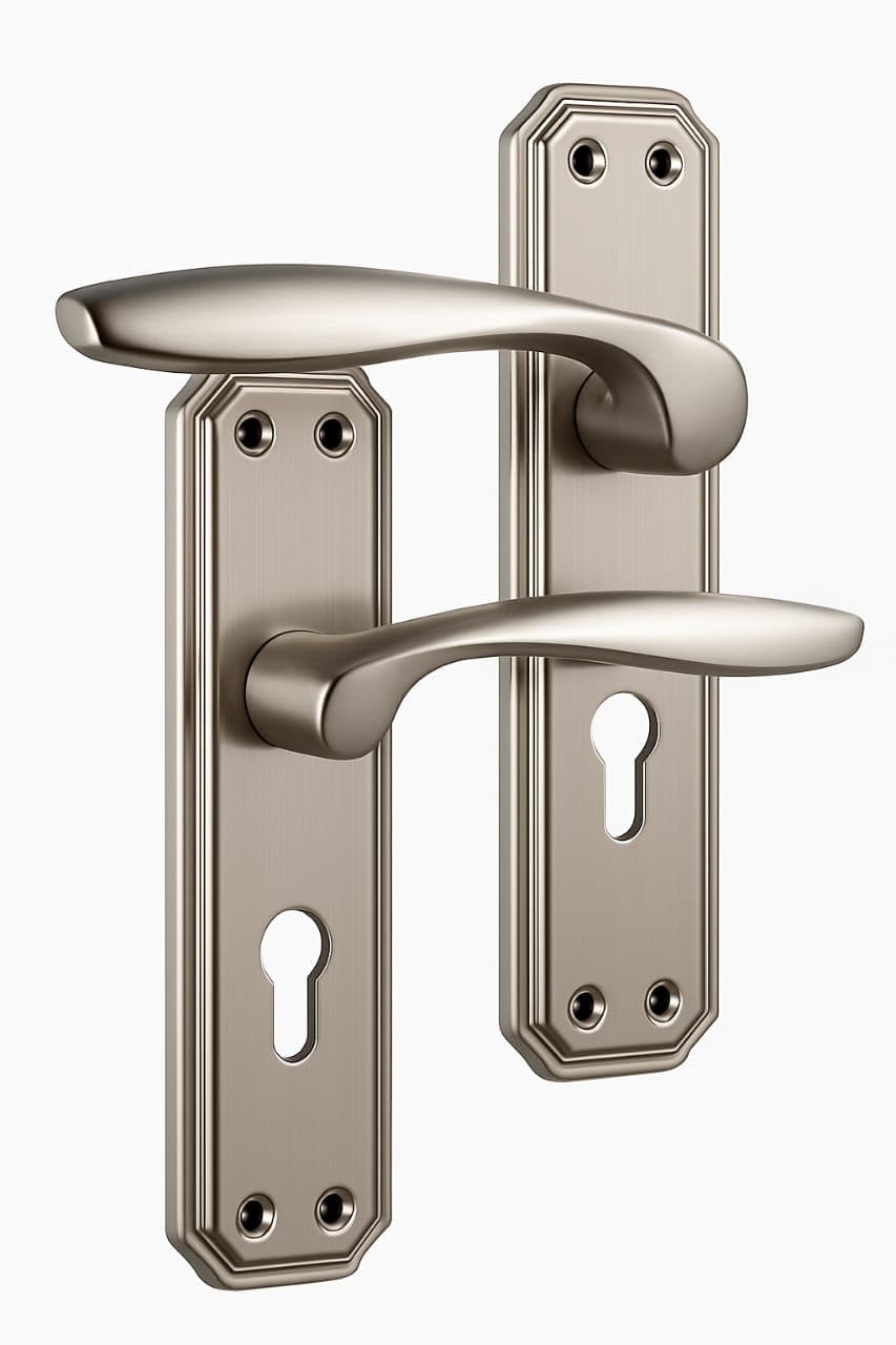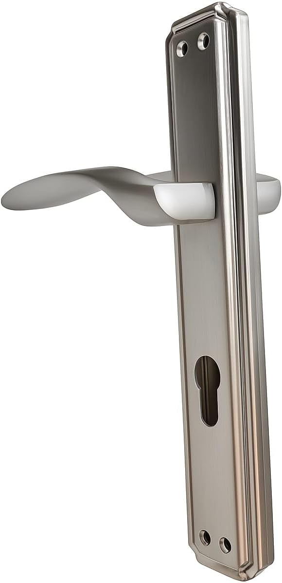 Durable stainless steel door lock set with handle, euro cylinder keyhole, and 3 keys. Features a modern brushed finish for lasting security and style.