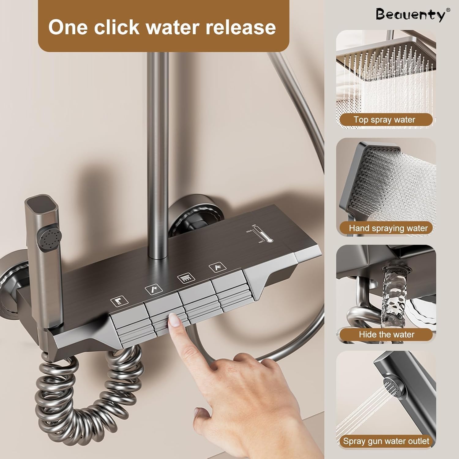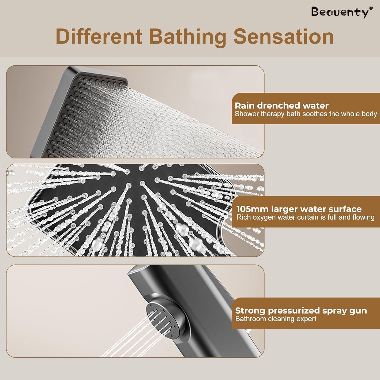 Luxury Wall Mount Shower System with Thermostatic Mixer – Matte Black Rainfall Overhead Shower, 3-Mode High Pressure Handheld Sprayer, Bidet Spray Combo, Durable Stainless Steel Bathroom Faucet Set