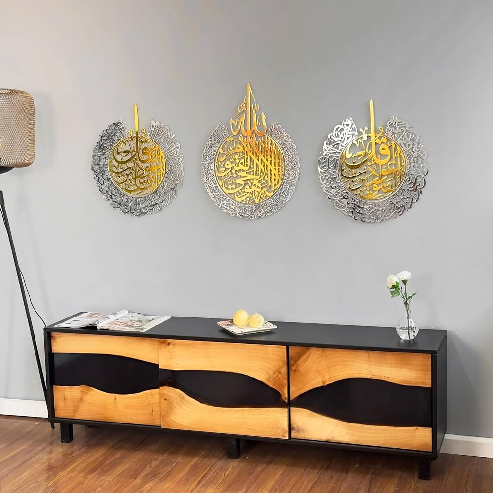 Metalic Ayatul Kursi, Surah An-Nas and Surah Al-Falaq Islamic Wall Art (Set of 3)