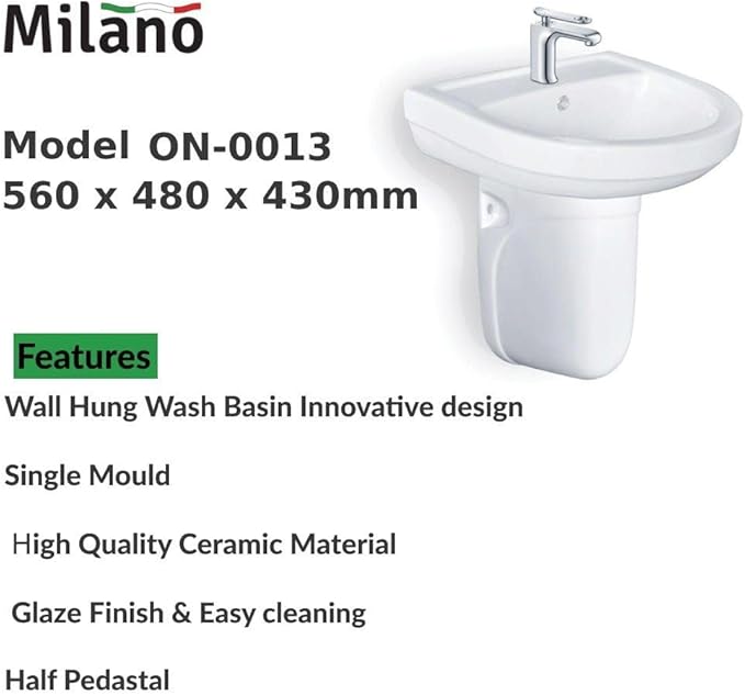 Be the first to review “Milano Wall Hung Wash Basin (56x48x51) cm – White Finish | Durable Ceramic Countertop Washbasin | Wall Mounted Wash Bowl | Modern Vessel Sink For Bathroom, Washroom” Cancel reply