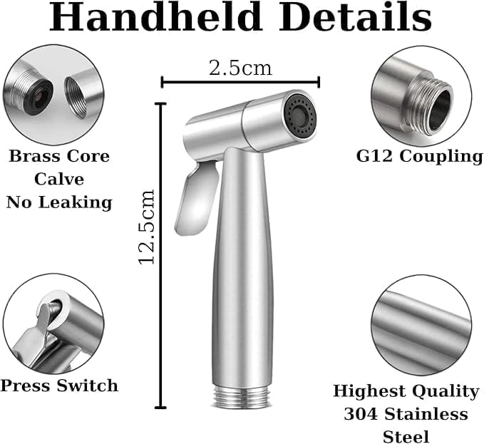 Premium Stainless Steel Bidet Sprayer for Toilet With 1.5 Meter Stainless Steel Hose, Easy 5-Minute Installation, Powerful Water Pressure (Full Shattaf Set)